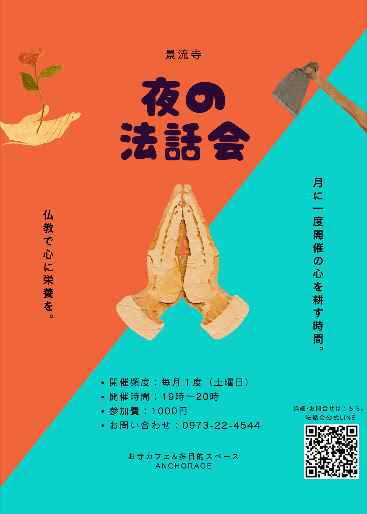 毎月1度、お寺カフェで開いている、フランクな夜の法話会。